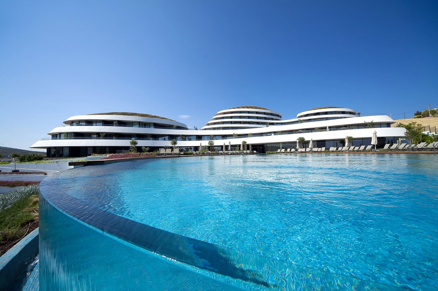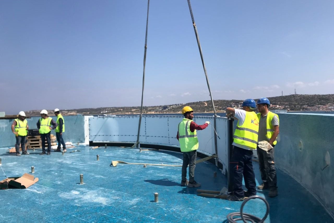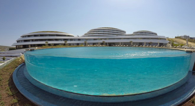İzmir’in en çok tercih edilen tatil beldesi Çeşmede 750 ton kapasiteli Folkart Hills konutlarının yüzme havuzu akrilik paneli akrilikhavuz ekibi tarafınca 2018 yılında başarı ile teslim edilmiştir. Tasarımı ve montajı 25 günde tamamlanmıştır. Havuz dezenfeksiyon sistemi klorla yapılmaktadır. Folkart Hills müşterilerini havuzlarında yüzerken Fener burnunun mavi sularına sonsuzluk taşmasıyla bağlamaktadır. Folkart Yapı AŞ tarafından akrilikhavuz ekibine teslim edilen projede kullandığımız panelin yüksekliği 1200mm, uzunluğu 10400mm ve çapı 16000mm’dir.